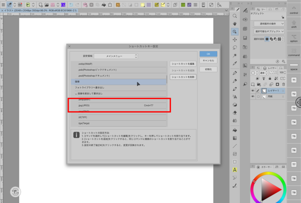私はcmd + T7に画像を統合して書き出し>jpegを割り当てています。