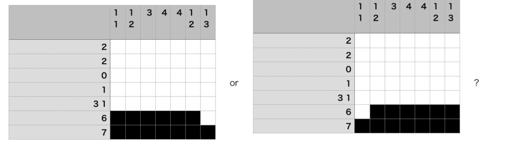 ⑥下から2番目の行は左図のように塗らなければならないことがわかる。