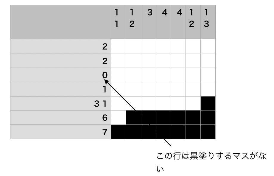 ちなみに0はその行、または列に黒塗りできるマスがないことを意味している。