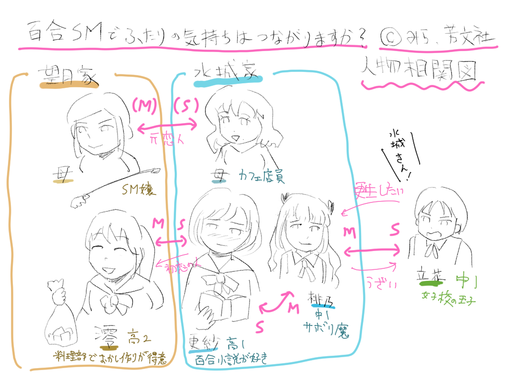 話の主軸は更紗と澪の関係なんですが、妹の桃乃とその同級生の立花、更紗と澪の母親同士それぞれでもSM関係で繋がっていまして、それぞれ違う趣があってそれもまたいいんですよ。桃乃の元気で計算高いキャラが好きです。